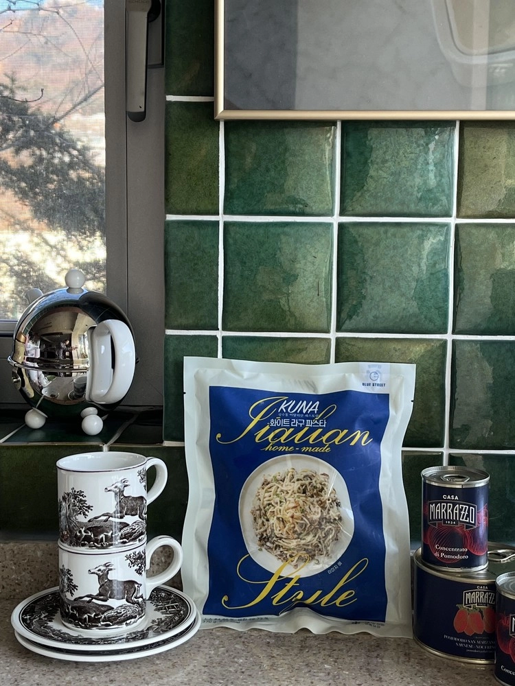 쿠나의 화이트라구는 치즈의 풍미가 가득한 크림 속에 소고기가 가득 들어 입안가득 묵직하게 채워지는 감칠맛과 입에 착착 감기는 꼬들한 생면의 밸런스가 너무 잘맞는, 크리미한 매력이 가득한 파스타 입니다. 많은 분들이 마지막의 어니언칩을 신의 한수라 일컫는 만큼 마지막에 어니언플레이크를 가득 뿌려 먹으면 바삭하고 개운한 맛이 그렇게나 잘 어울릴 수 없죠. 면을 삶는데 3분 조리하는데 2-3분 ,약 10분만 투자하면 이탈리아 할머니가 만들어 주신듯한 따뜻하고 다정한 가정식을 만나볼 수 있죠.