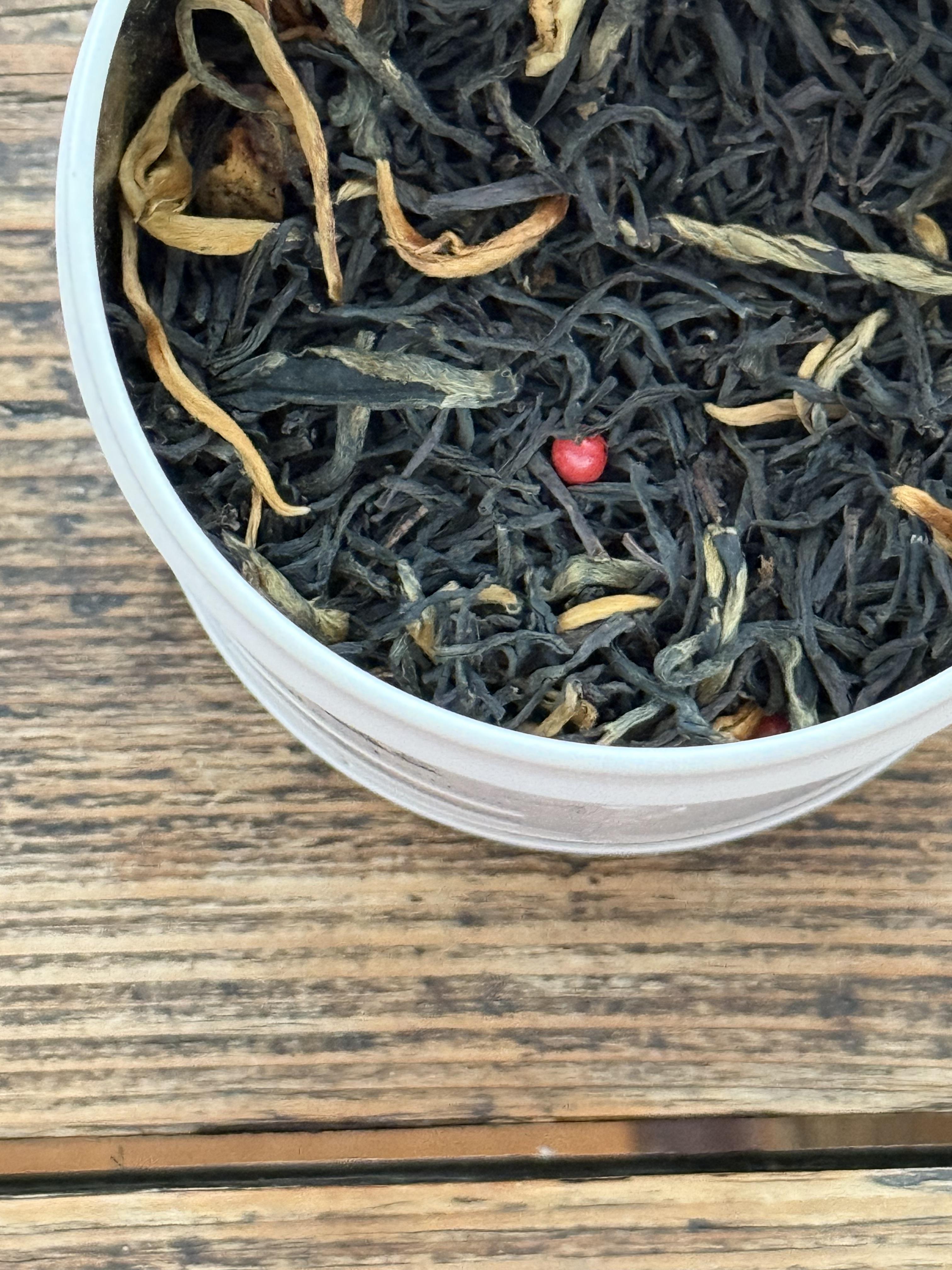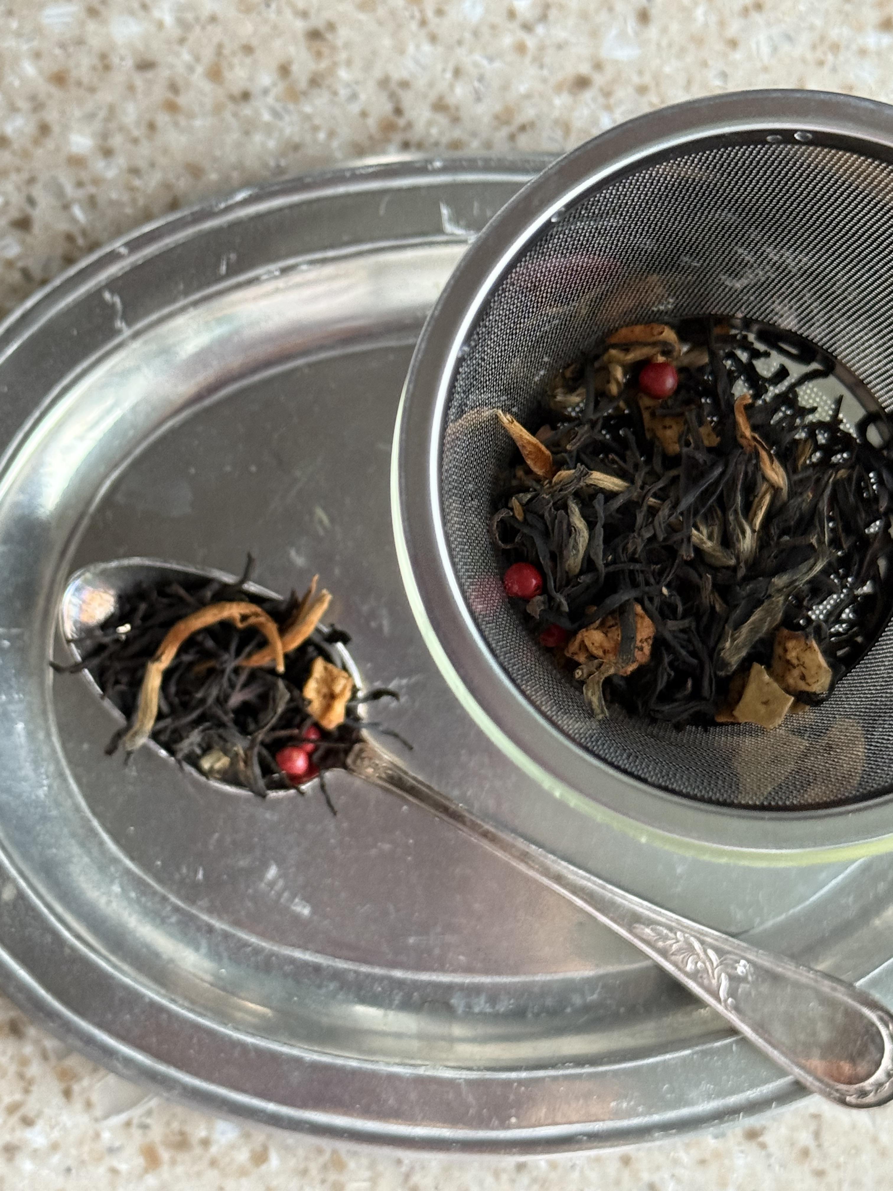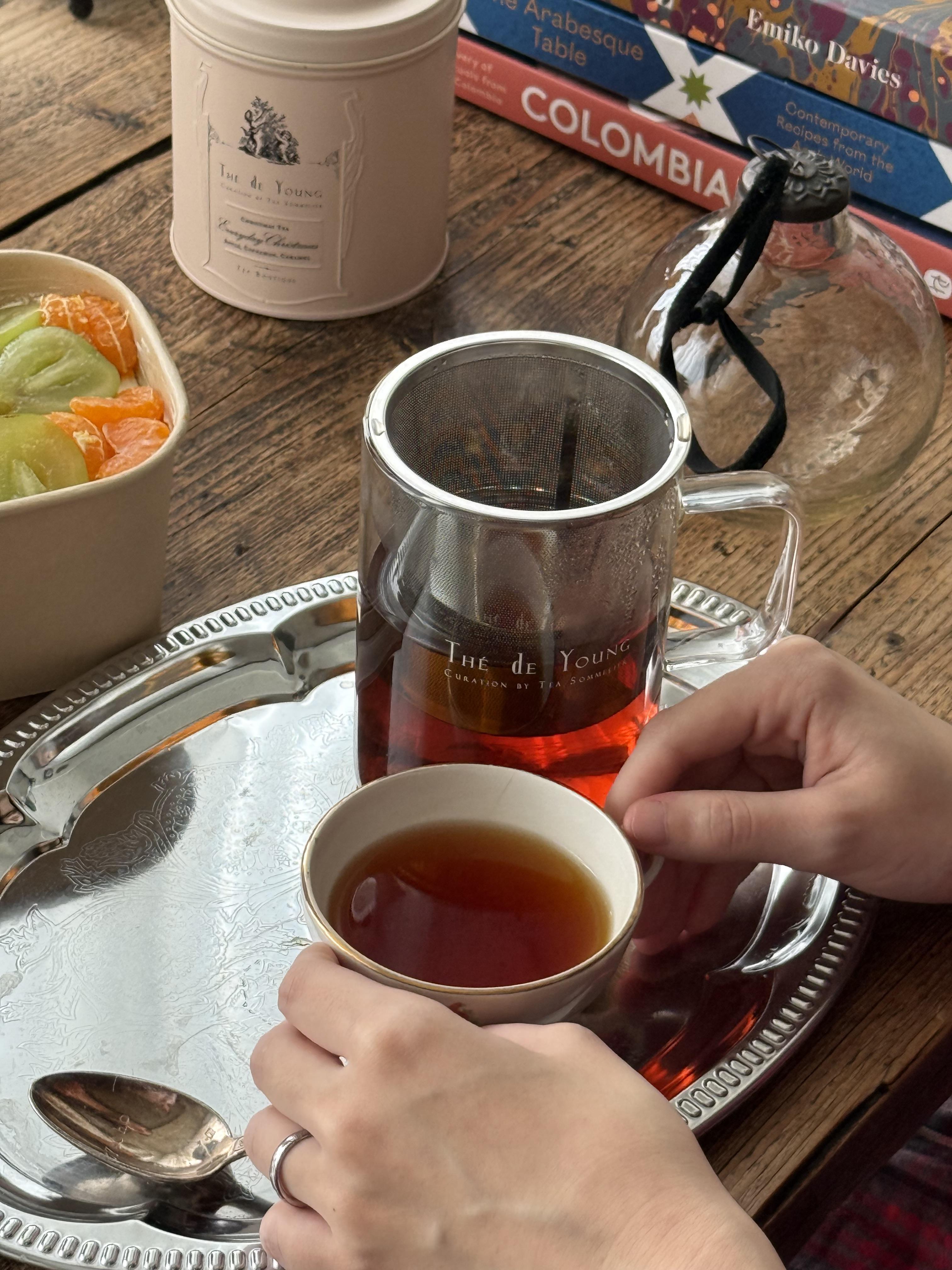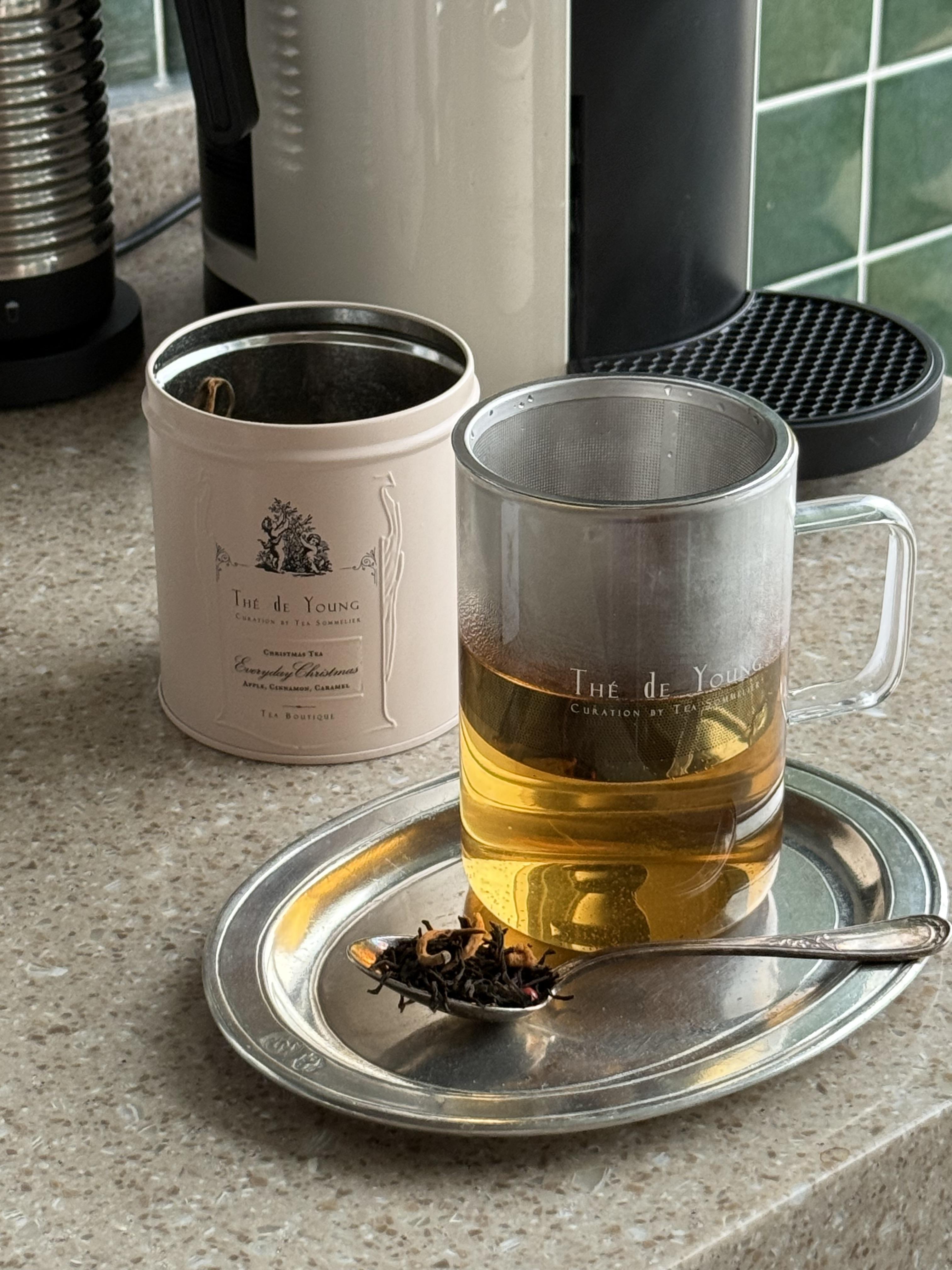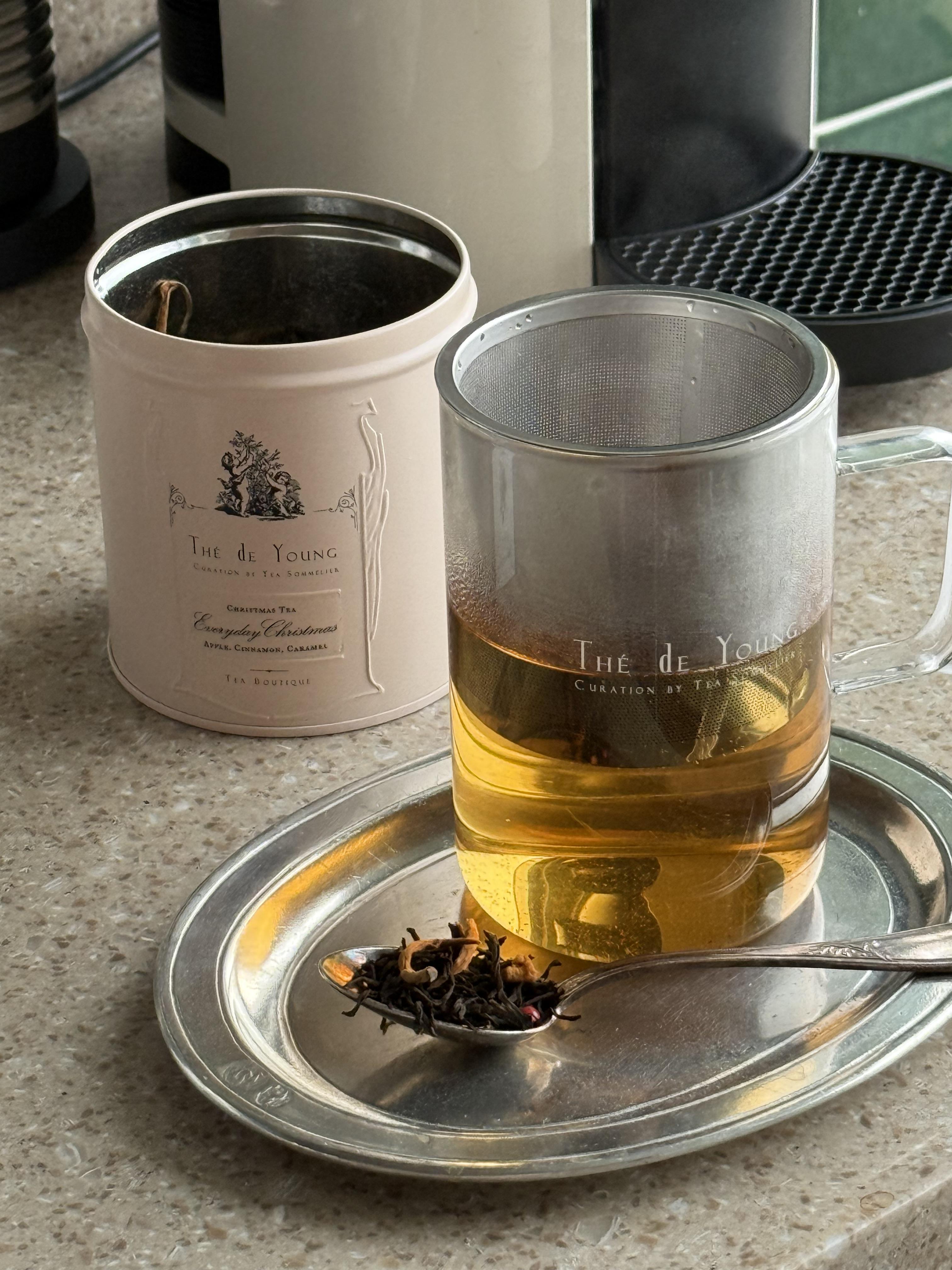 티를 처음 먹어보았을 때 저는 겨울에 자주 마시곤 하는 오렌지나 시나몬 스파이스의 티를 상상했어요. 하지만, 에브리데이 크리스마스 티는, 저의 예상과는 다르게 유니크한 티 플레이버를 가지고 있었습니다..제가 너무 좋아하는 실론티에 골든팁이 가득한 운남성 홍차를 블렌딩하고, 사과칩,시나몬,카라멜과, 핑크페퍼콘으로 어우러진 이 독특한 조합은, 묵직하고, 무겁기 보다는 온기가 전해지는 따스함과 상큼함, 그리고 부드러운 스파이시함이 더해진, 골든 빛깔의 블렌딩차라, 매일매일 크리스마스의 설레임을 전해줍니다. 그대로도 너무 맛있어, 가족들과 오손도손 모여, 과일이나, 달콤한 디저트와 더해 먹으면 맛있을 거에요!