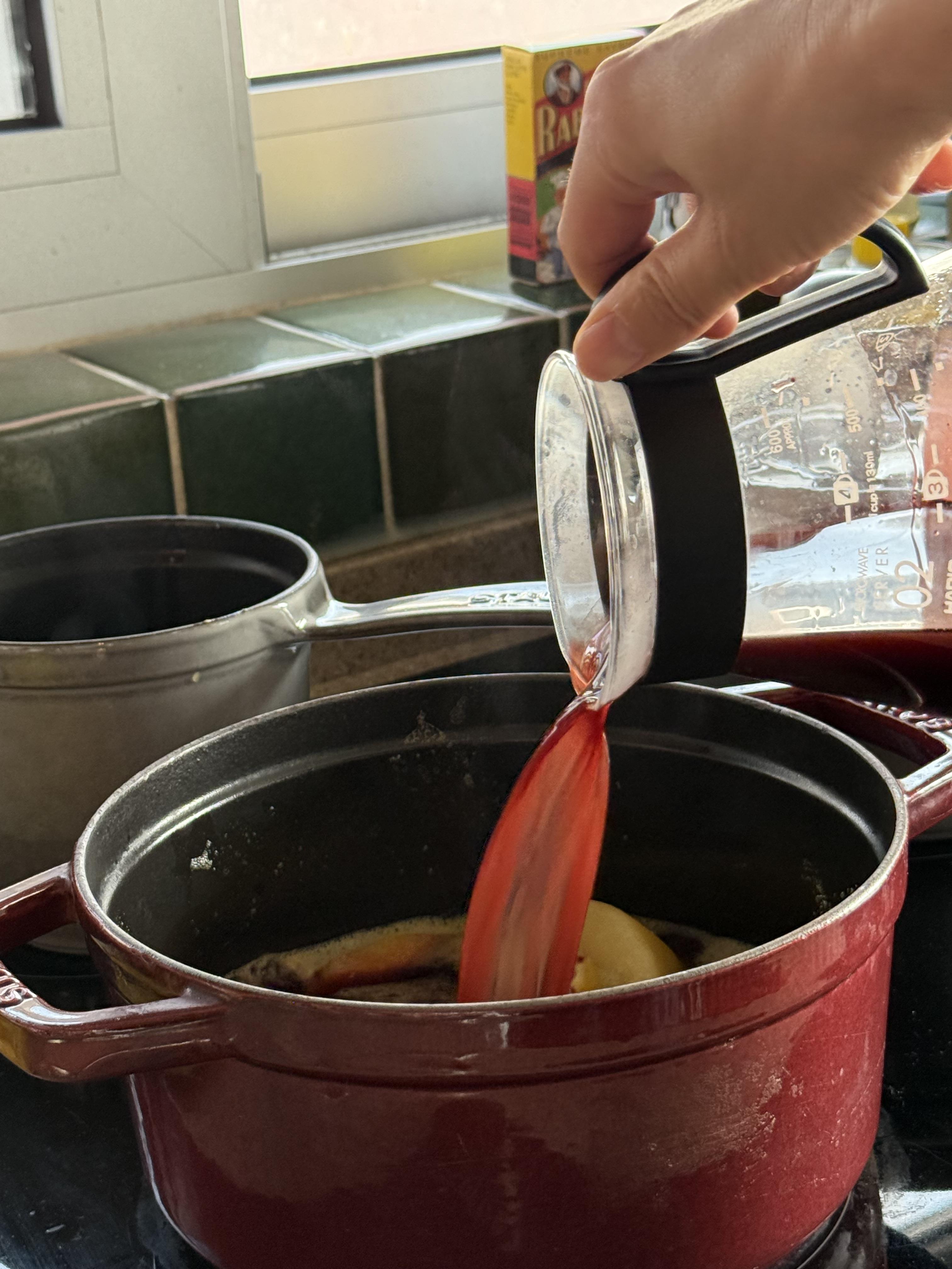 레드와인 방쇼의 경우는, 대개 사과 레몬 오렌지에 정향이나 시나몬 스틱을 넣어 끓이는데, 이렇게 만들면, 시트러스 계열의 껍질 때문인지 쓴 맛이 나고, 과일의 깊은 풍미가 잘 우러나지 않더라고요. 그래서 저는 다른 방법으로 만들어 보았는데, 맛은 대성공 이었습니다.