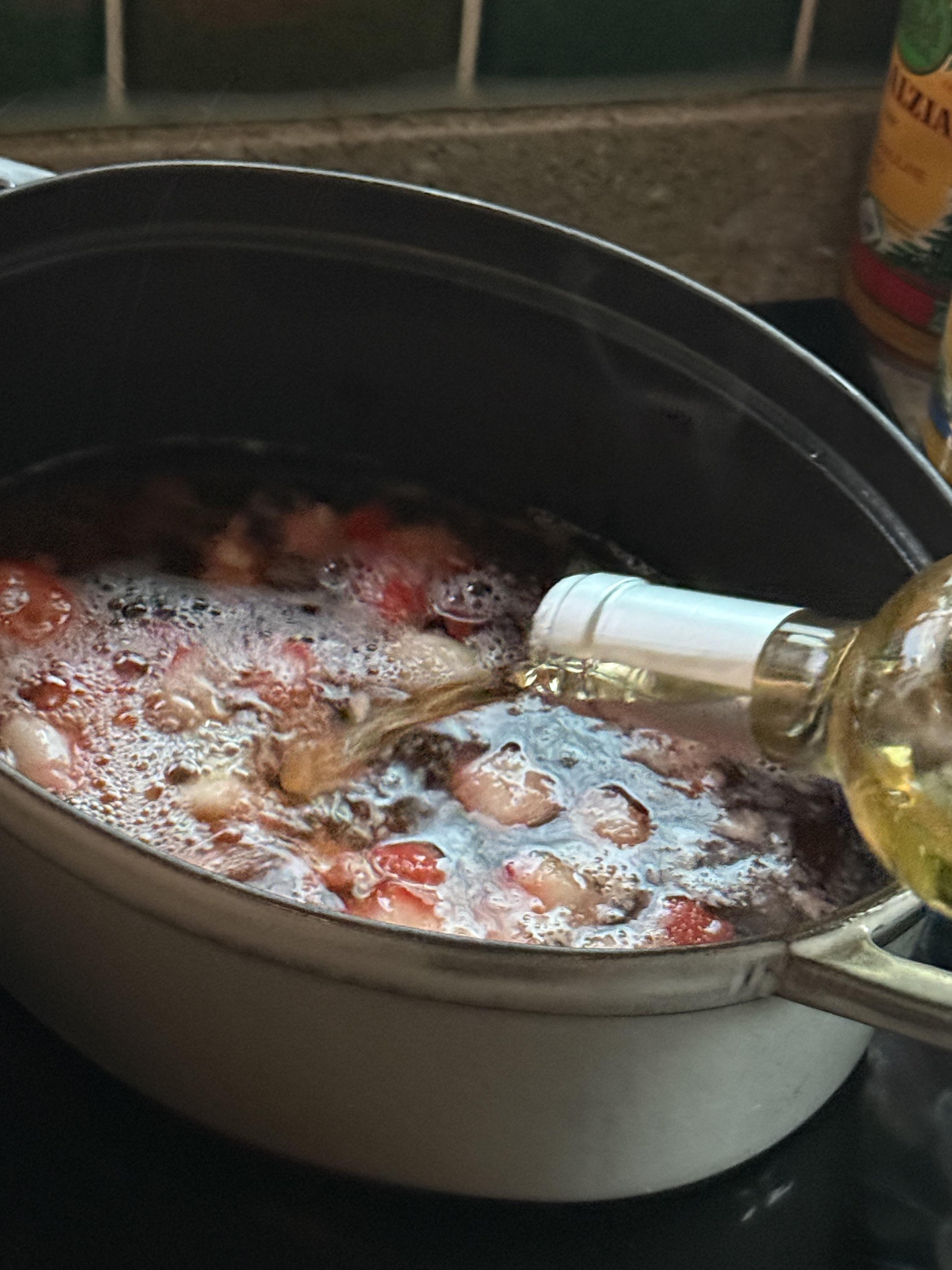 딸기를 라임즙과 설탕에 으깨어 넣고, 냄비에 부은뒤, 화이트와인,설탕, 오렌지 주스,방쇼 패키지를 넣어 레드와인 방쇼와 같은 방법으로 뭉근히 끓였는데, 다들 환호할 정도로 맛있었습니다..이렇게 맛있는 방쇼는 처음 먹어본다고 하네요.