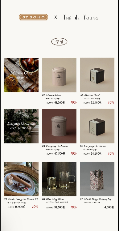 특별한 구성으로 다양하게 준비된, 떼드영의 티 셀렉션과 함께 따스한 연말 보내시길 바라며, 저는 12월 한달동안, 67소호의 식료품점 느낌같은 작고, 소중한 크리스마스 선물 셀렉션으로 찾아뵙겠습니다. 감사드립니다. 정을 나누는 따스함 가득한 연말 보내세요!